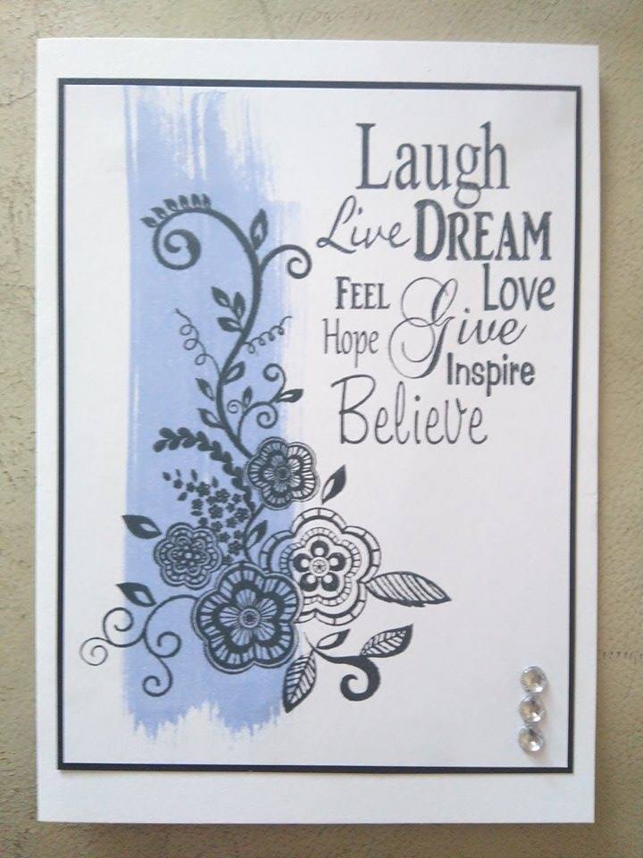 Once it was dry I trimmed the edges and mounted it onto black card. A card blank and a few black gems just finished it off.