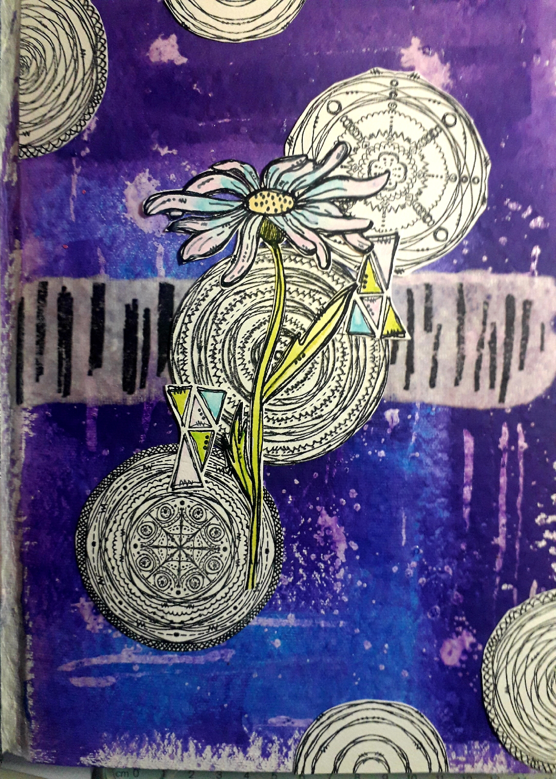 Then I chose the three largest mandalas and used collage medium to glue them diagonally across the page.