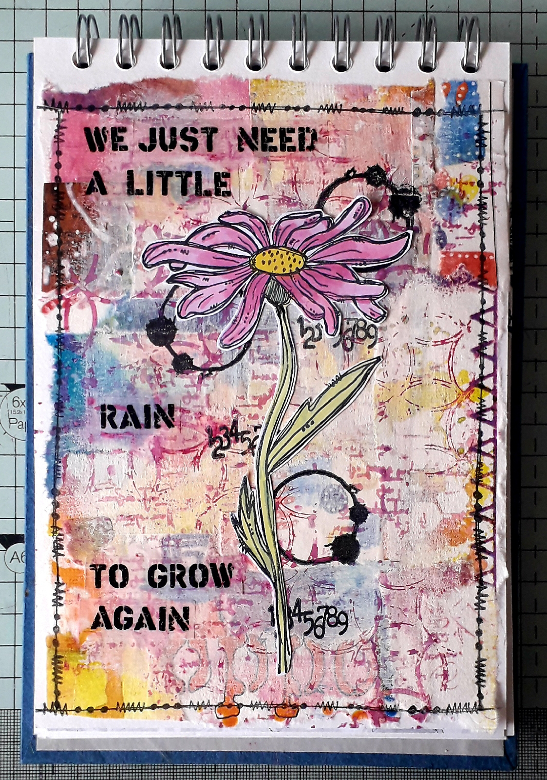 Then I added texture paste through the distressed diamond dinkable from set 2.